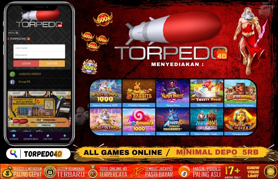TORPEDO4D adalah situs slot dan togel online terpercaya yang siap membagikan hadiah jutaan rupiah setiap harinya untuk semua member aktif. Dengan pilihan game slot gacor dari provider ternama dan pasaran togel resmi seperti Singapore, Hongkong, dan Sydney, peluang menang di TORPEDO4D terbuka lebar. Cukup dengan modal kecil, kamu sudah bisa meraih jackpot besar dan bonus menarik. Tersedia juga promo harian, cashback, hingga garansi kekalahan yang bikin main makin seru. Sistem aman, transaksi cepat, dan layanan customer service 24 jam. Yuk, daftar sekarang dan buktikan sendiri keberuntunganmu hanya di TORPEDO4D!